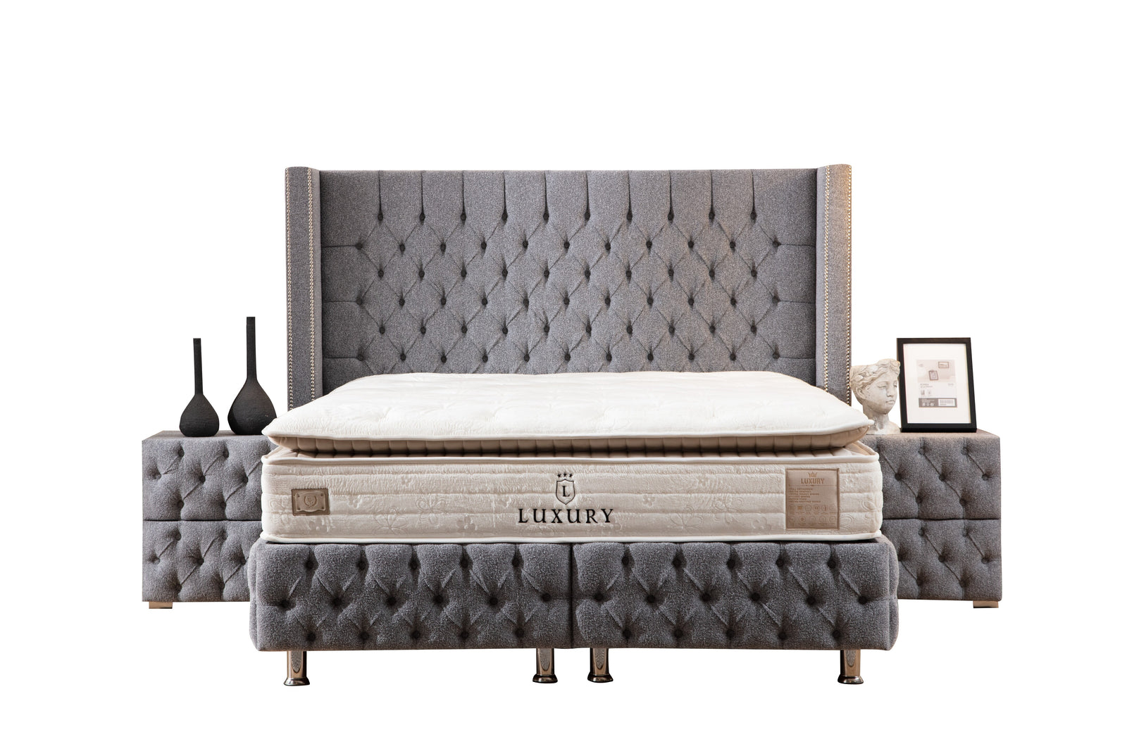 We offer box spring beds in 140x200, 180x200, and king-size . Choose from modern designs, timeless classics, or exclusive models like the Royal Box Spring Bed, Vita Box Spring Bed, or Luna Box Spring Bed . Our elegant CH box spring beds fit perfectly into any bedroom!