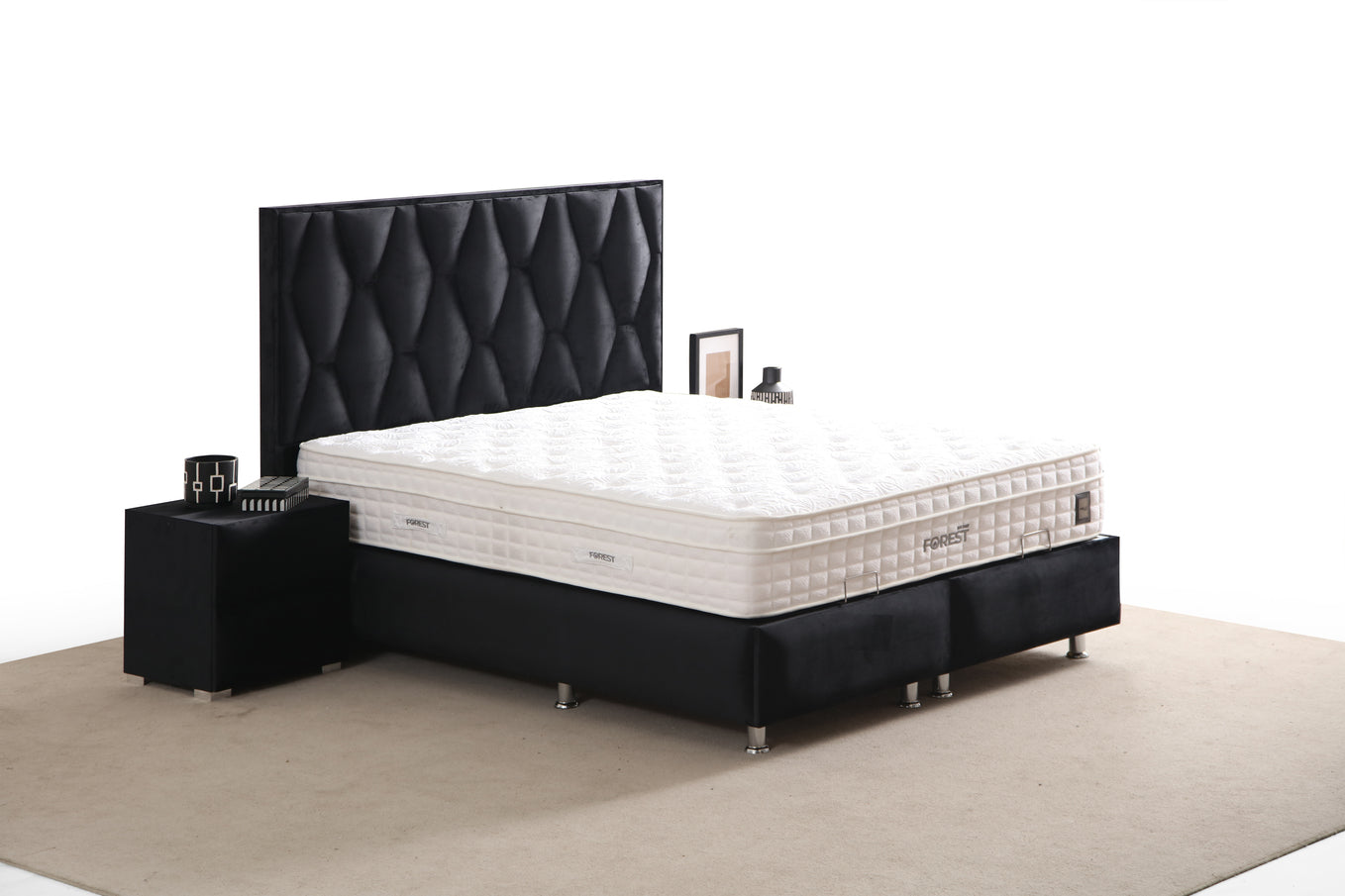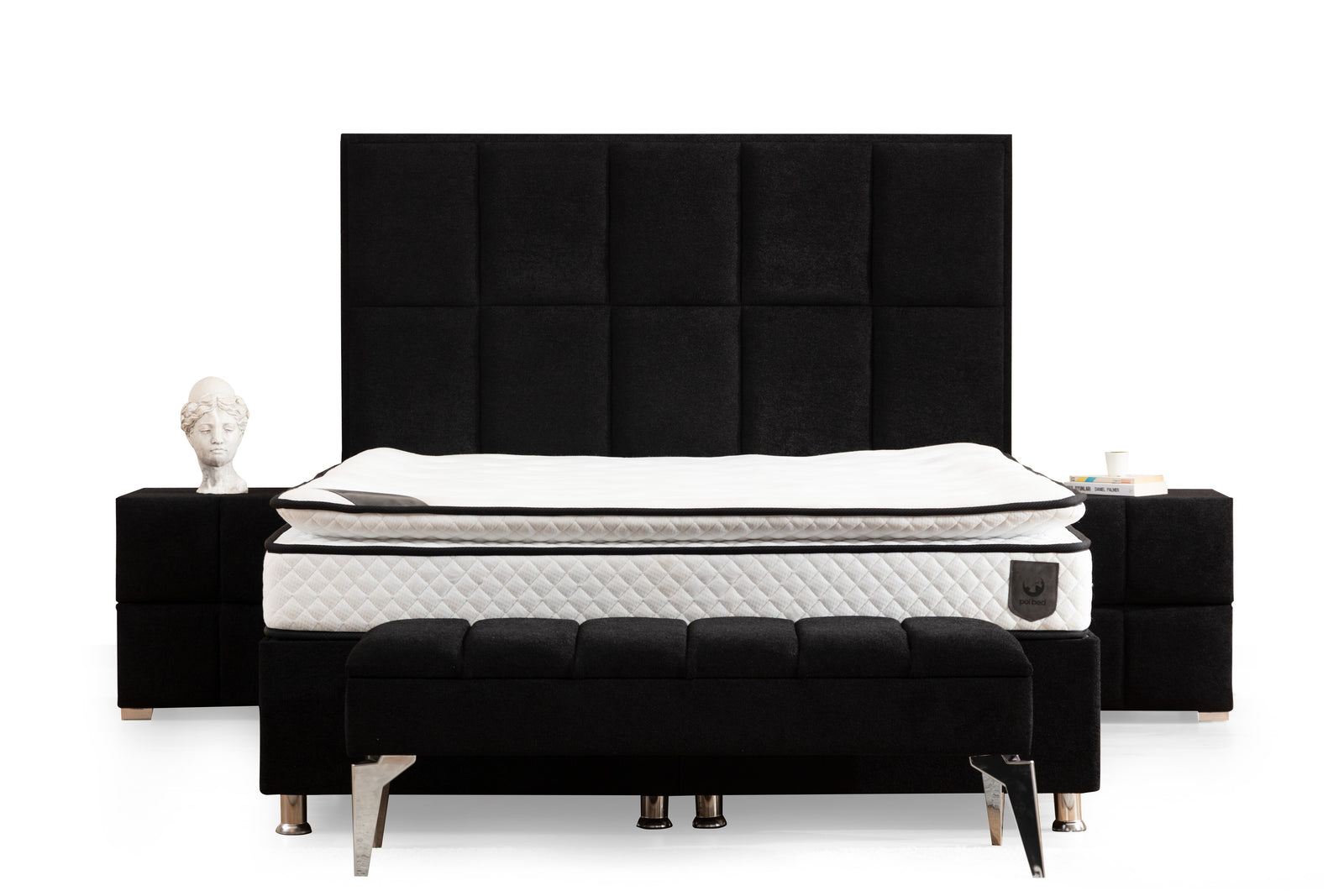 Our box spring beds with integrated storage are the ideal solution for anyone looking for more space in the bedroom . Whether for bedding, clothes, or other items, the hidden storage space offers maximum functionality without compromising the elegant look.