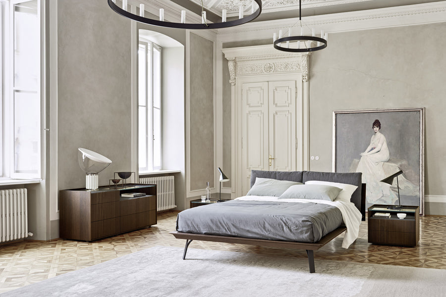 Adopt a bed with comfort and elegance in mind! The Abbraccio wooden bed with padded removable cushions and elegant steel feet offers luxury and comfort for your nights. Made in Italy by Sangiacomo, it will delight your senses.